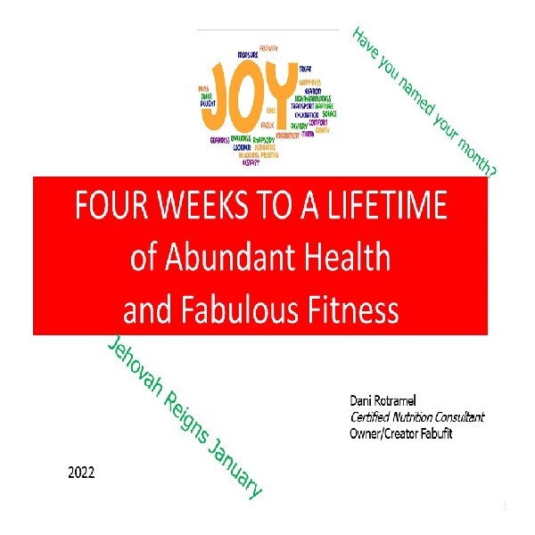 A simple, but powerful, Christian four week course to take you to the next level in your health and fitness. Learn simple strategies that most never learn. Come from the comfort of your own home. Each class will be archived on a confidential page for you in case you have to miss or wish to review.